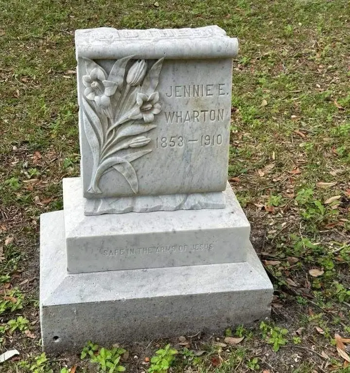 Rather, this story is about Raiser’s other great-grandmother, Jennie Elizabeth Hicks Wharton, whose gravesite is also at Evergreen Cemetery.
