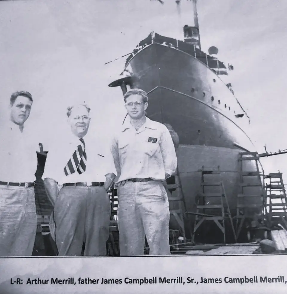 In 1920, James Eugene Merrill retired and turned the business of Merrill-Stevens Dry Dock & Repair over to his sons, James C. (Jimmy) Merrill, Sr. and Kenneth Merrill. Jimmy Merrill entered the business in 1908 at 19 years of age, working with his father and had to work his way up the hard way.